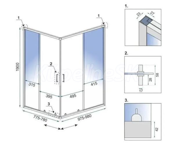 REA City rohový sprchový kút 80x100x190 cm,rohový vstup,posuvné dvere,Číre/brúsený Nikel