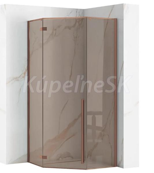 REA Diamod päťuholníkový sprchovací kút 90x90x195 cm krídlové dv, Dymové Hnedé/brúsená Meď