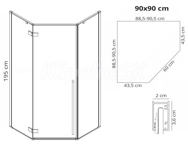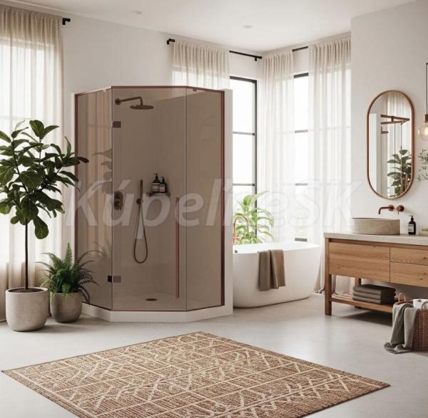 >>  Sprchové kúty a žľaby  >>  Päťuholníkové kúty  >>  REA Diamod päťuholníkový sprchovací kút 90x90x195 cm krídlové dv, Dymové Hnedé/brúsená Meď