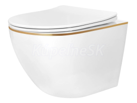 REA Carlo Mini Tornado NFQ WC závesné 49x35,5 cm Biele lesklé/Zlatý okrajaWC sedátko Biele
