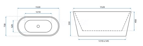REA Milano voľne stojaca akrylátová vaňa 150x74 cm so sifónom Biela