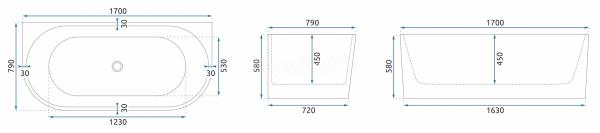 REA Veneta voľne stojaca akrylátová vaňa k stene 170x79 cm so sifónom, Biela