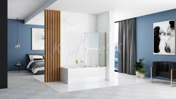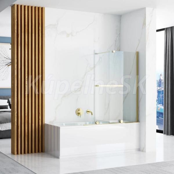REA Fabian 2-dielna posuvná vaňová zástena 101x139 cm so vzperou sklo Číre rám Zlatý