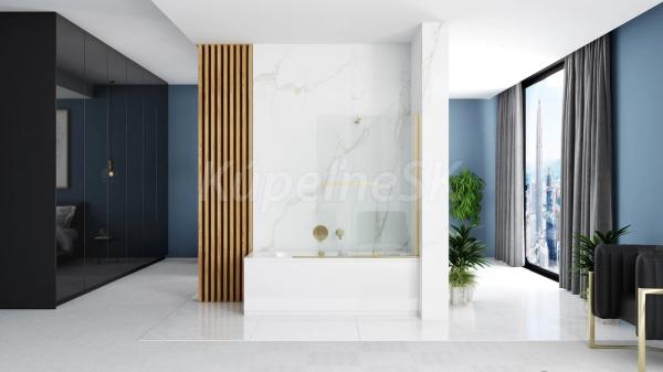 Štýlová vaňová zábrana Rea Fabian Zlato sa skvele hodí do každej kúpeľne, bez ohľadu na štýl jej zariadenia. Model je univerzálny v použití.