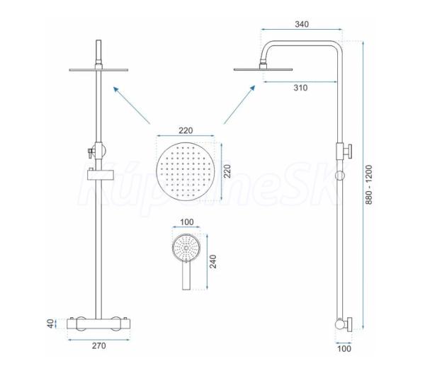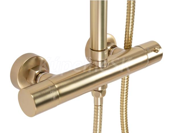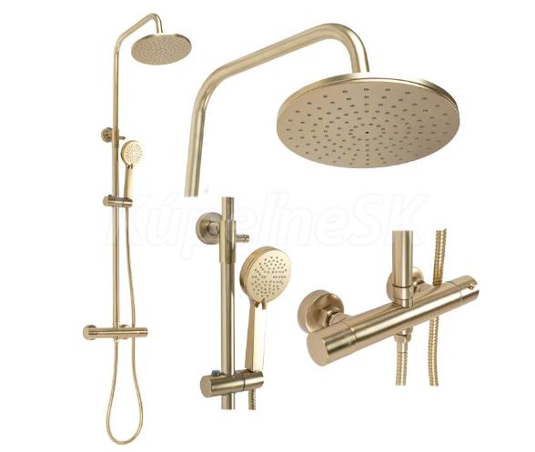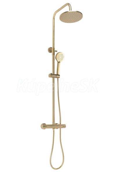 REA Parot sprchový stĺp s termostatickou batériou,hlavová,ručná sprcha brúsené Zlato P2323