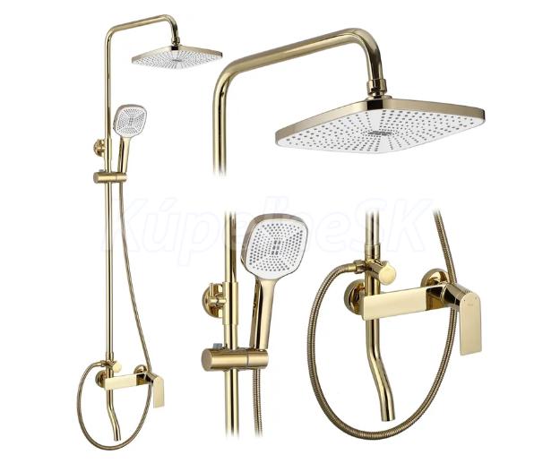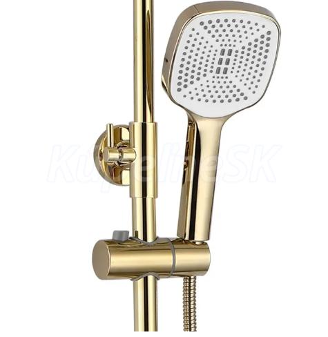 REA Storm sprchový stĺp s pákovou batériou, hlavová, ručná sprcha výška 144 cm Zlatý P9530