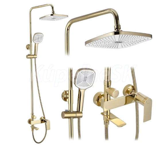 REA Storm sprchový stĺp s pákovou batériou, hlavová, ručná sprcha výška 135 cm Zlatý P9531