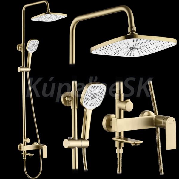 REA Storm sprchový stĺp s pákovou batériou,hlavová,ručná sprcha výš 135cm brús.Zlato P9536