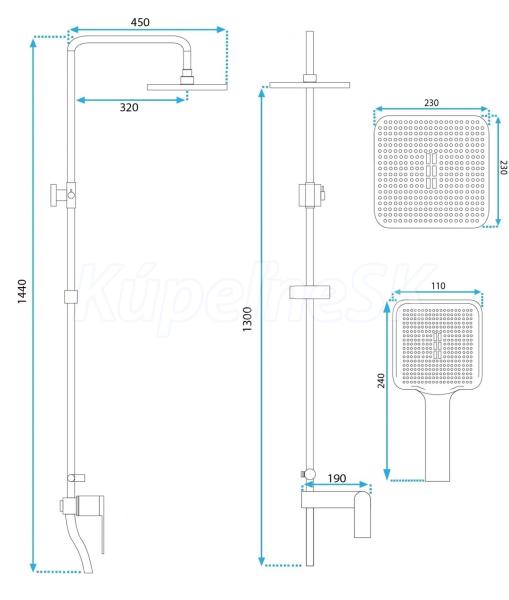 REA Storm sprchový stĺp s pákovou batériou, hlavová, ručná sprcha výška 144 cm Chróm P4881