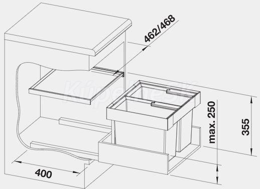 výška zabudovania 370 mm od dna zásuvky, hĺbka zabudovania 400 mm