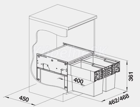 Výška zabudovania 361 mm, hĺbka zabudovania 400 mm, nutný vnútorný rozmer pre pojazdy 450 mm.