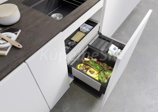 voliteľne dostupné: praktické príslušenstvo ako veko na nádoby, SELECT clip držiak pre vrecia na odpadky, elektrický otvárací systém BLANCO SELECT AutoMove alebo nožný výsuv BLANCO MOVEX