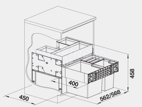 Pri plánovaní treba zohľadniť výšku zabudovania košového systému, hĺbku drezu a z toho vyplývajúci min. rozmer pre spodnú skrinku.
