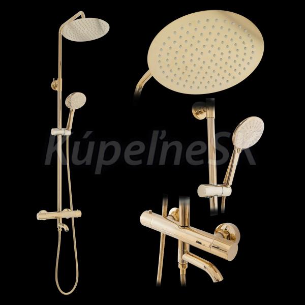 REA Lungo sprchový stĺp s termostatickou batériou, hlavová, ručná sprcha Zlatý P4114 REA-P