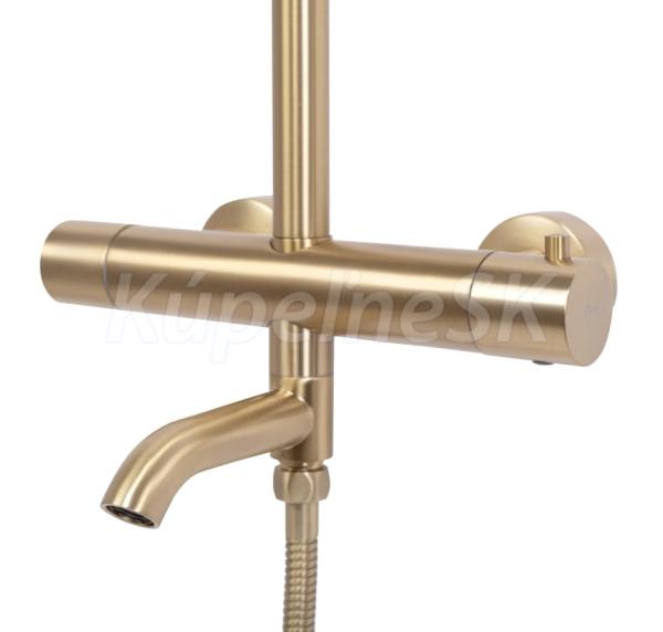 REA Lungo sprchový stĺp s termostatickou batériou,hlavová,ručná sprcha brúsené Zlato P6604