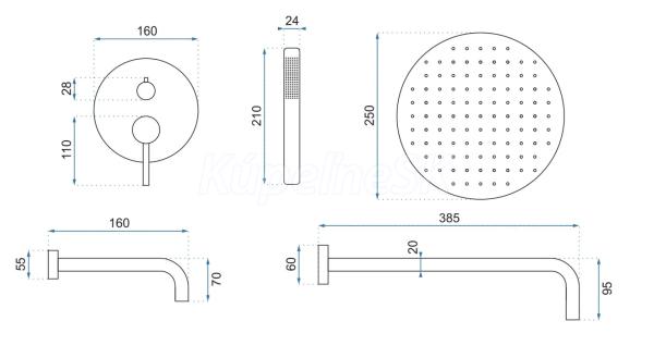 V sete je Ultra tenká 2mm dažďová sprcha kruhového tvaru 25 cm, batéria s povrchovými a zapuštěnými prvkami, s hlavicou a bodovým setom. Súprava Lungo je ideálna pre tých, ktorí hľadajú originálne riešenia a chcú vytvoriť originálnu a jedinečnú kúpeľňu svojich snov.