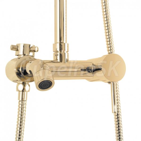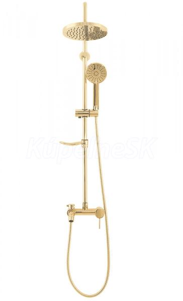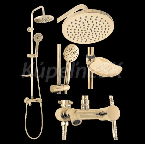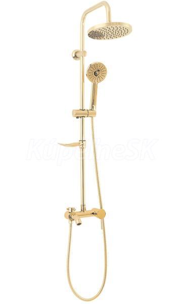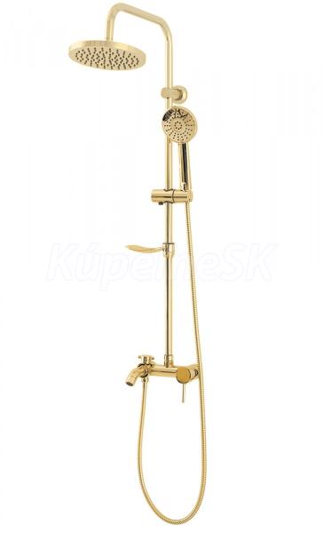 REA Luis sprchový stĺp s termostatickou batéri,hlavová,ručná sprcha,mydelnička Zlatá P7006