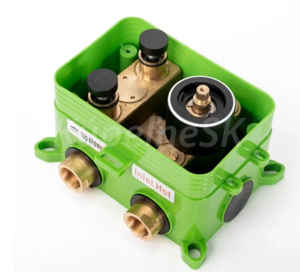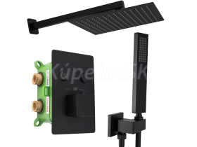 V sete je štvorcová sprcha s jemným odtokom o stranách 30 cm, batéria s povrchovými aj podomietkovými prvkami, hadica so sprchou a bodovým setom.