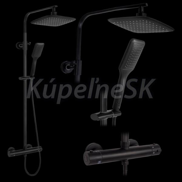 REA Tom sprchový stĺp s termostatickou batériou, hlavová, ručná sprcha Čierna matná P7101