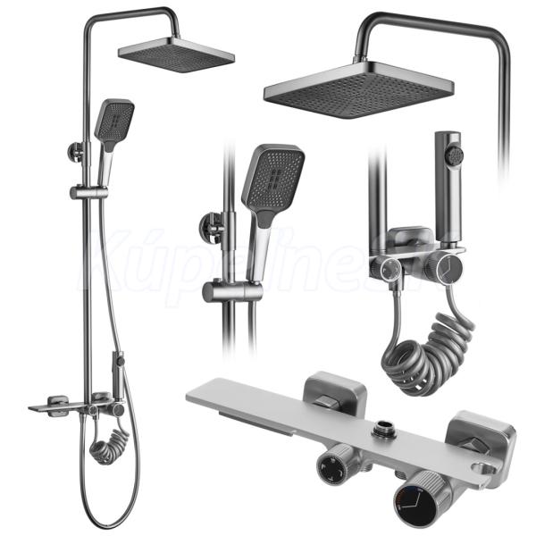 REA Helix sprchový termostatick stĺp hlavová,ručná sprcha,bidet sprška brúsený Nikel P6621