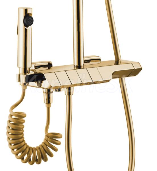 REA Rob sprchový stĺp s termostatickou batériou, hlavová, ručná sprcha Zlatá P6625