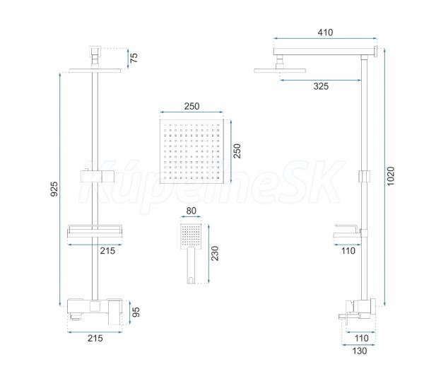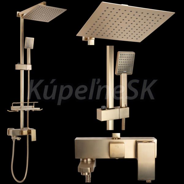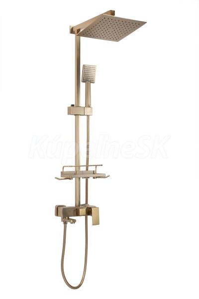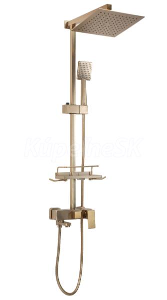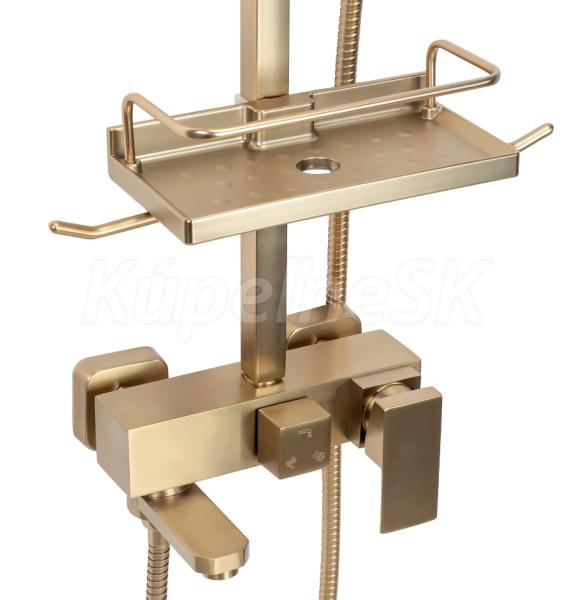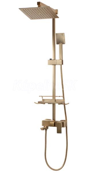 REA Jack sprchový stĺp s pákovou batériou,hlavová,ručná sprcha,polička brúsené Zlato P7050