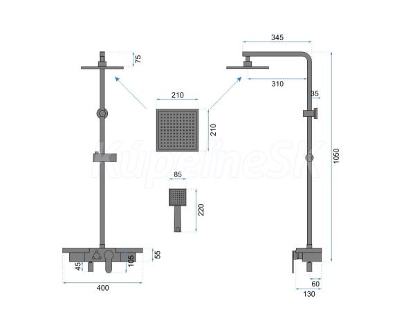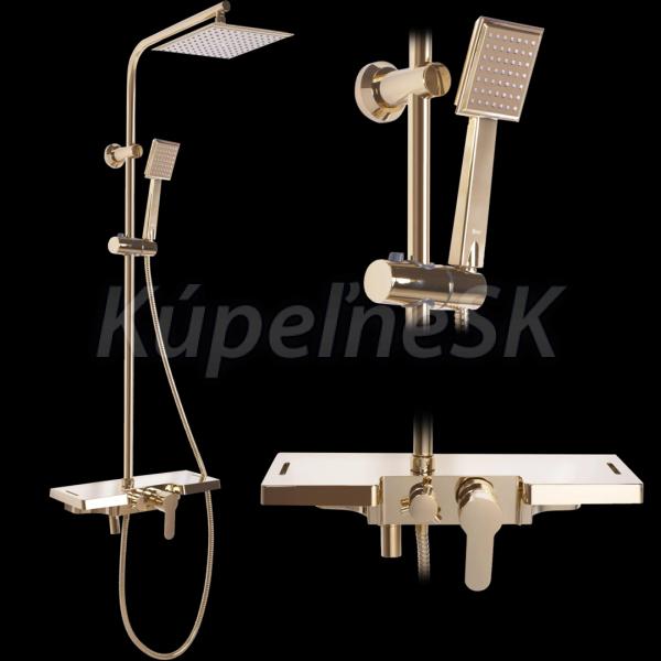 REA Bravo sprchový stĺp s pákovou batériou, hlavová,ručná sprcha Zlatý P4120 REA-P4120