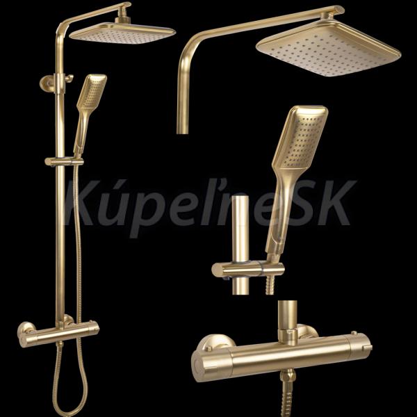 REA Tom sprchový stĺp s termostatickou batériou, hlavová, ručná sprcha brúsené Zlato P5004