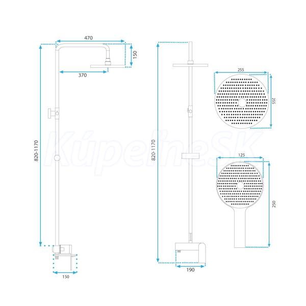 REA Marco sprchový stĺp s pákovou batériou, hlavová, ručná sprcha Titán P5600 REA-P5600