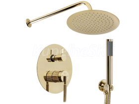 Set sprchový podomietkový Agron v zlatom prevedení vyniká moderným, minimalistickým dizajnom s jemnými ryhovaniami, čo mu dodáva výrazný charakter. Vďaka špeciálnej fáze výroby garantujeme maximálnu bezpečnosť a