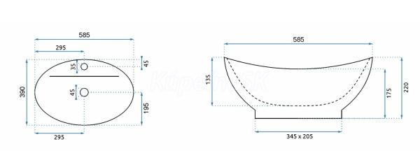 REA Cindy keramické oválne umývadlo na dosku 58,5x39 cm Biele lesklé U0155 REA-U0155