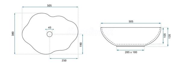 Umyvadlo vyrobené z najkvalitnejšej keramiky v bielej farbe a oválnom, vlnovom tvare. Umyvadlo je dokončené zlatým okrajom, čo dodáva pekný konečný efekt. Umyvadlo je neuveriteľne atraktívne na pohľad, je ideálne pre milovníkov nekonvenčných tvarov, vnáša eleganciu do usporiadania kúpeľne v dome aj v kancelárii. Umyvadlo je prispôsobené na montáž na dosku alebo skrinku. Bolo vyrobené z vysokokvalitnej sanitárnej keramiky. Vďaka špeciálnej fáze výroby je odolné a ľahko sa udržiava v čistote.