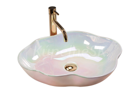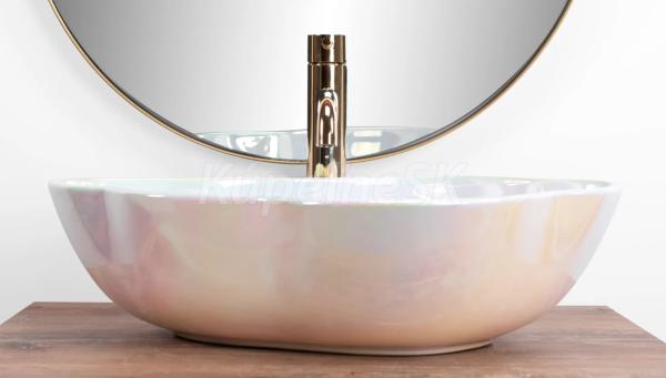 Vážime si vás: umývadlo na vrchnú dosku, ktoré zabezpečí moderný vzhľad kúpeľne a vysokú funkcionalitu. Perleťové prevedenie s vysokým leskom a oválny, vlnitý tvar dodávajú eleganciu a zároveň zdobia prostredie. Bude skvelým doplnkom pre milovníkov nekonvenčných tvarov a farebných kombinácií, prinášajúc do dizajnu kúpeľne nádych elegancie.