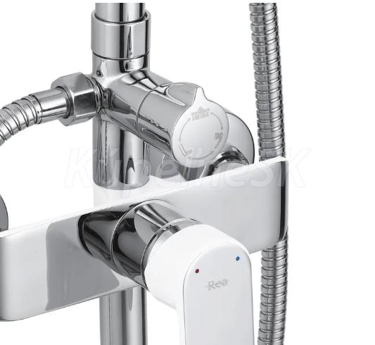 REA Bloom sprchový stĺp s pákovou batériou, hlavová, ručná sprcha Chróm/Biela P9527 REA-P9