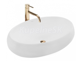 Umyvadlo vďaka snehobielu povrchu je ľahké na údržbu. Moderný tvar v spojení s konvenčným tvarom misy pritiahne pozornosť každého. Odporúčame k umývadlu zlatý ventil a batériu v zlatom prevedení.
