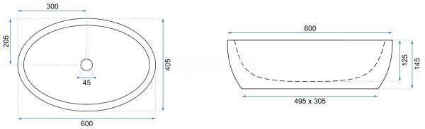 REA Melania keramické oválne umývadlo na dosku 60x40,5 cm Biele lesklé U0656 REA-U0656