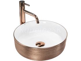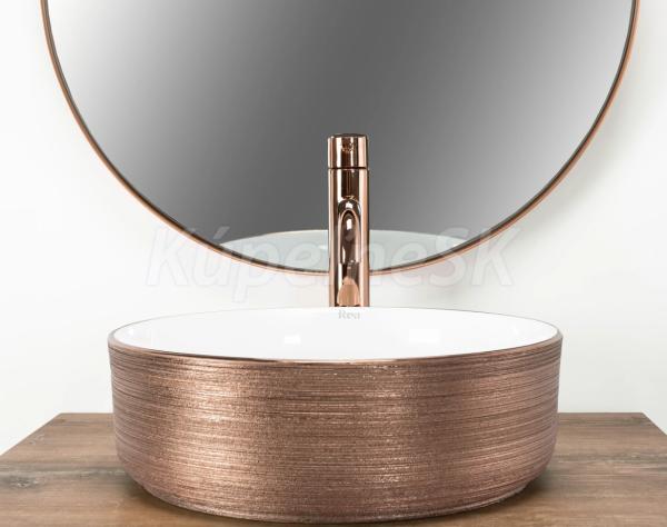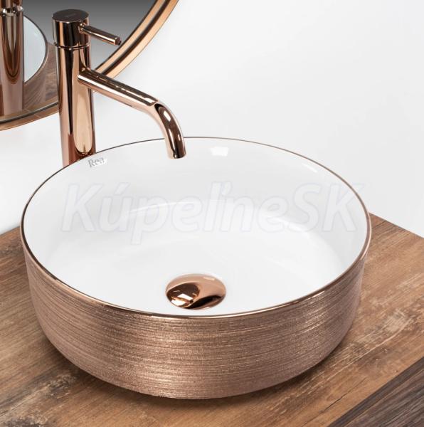 REA Sami keramické okrúhle umývadlo na dosku priemer 36cm brúsené Ružové Zlato/Biela U3303