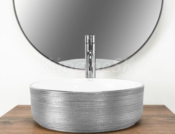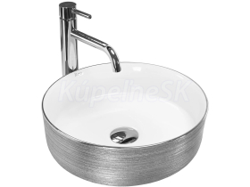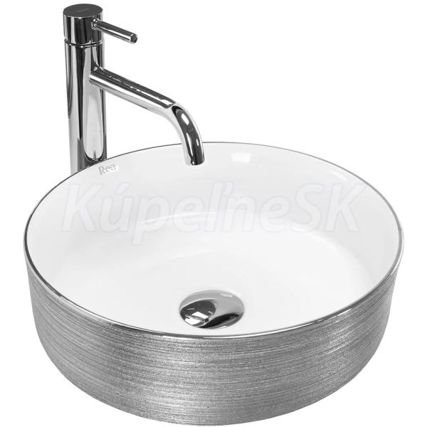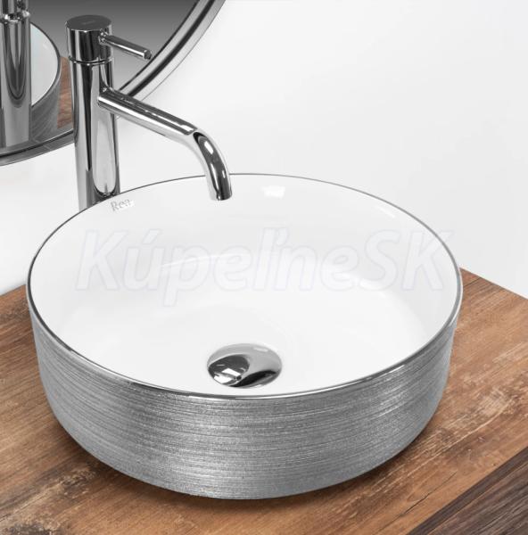 REA Sami keramické okrúhle umývadlo na dosku priemer 36 cm brúsené Strieborná /Biela U3304