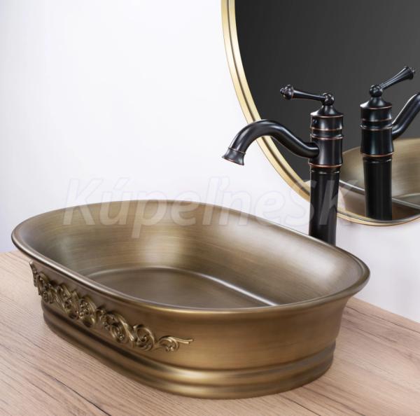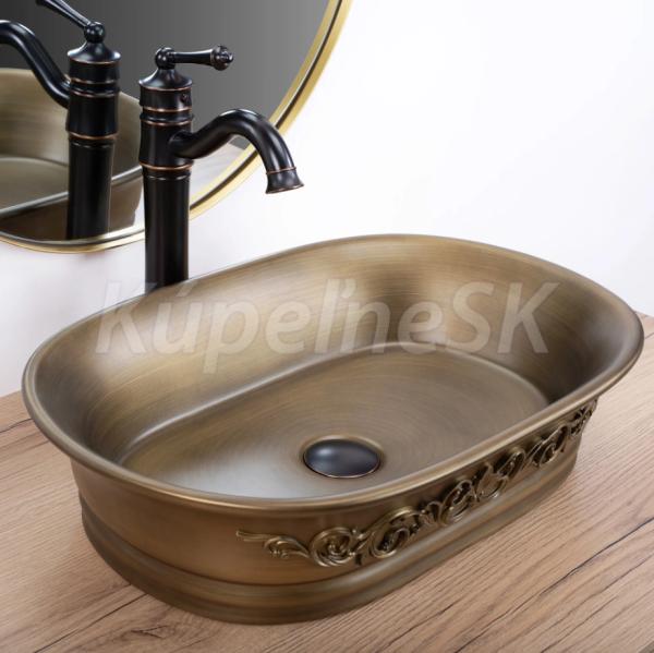 REA Wilma Rustic keramické oválne umývadlo na dosku 55x38 cm brúsená Meď U3305