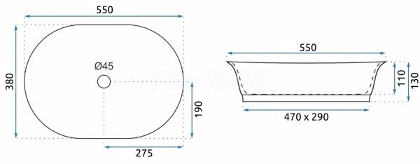 Umyvadlo je prispôsobené na montáž na dosku alebo na skrinku.