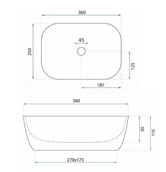 >>  Umývadlá  >>  Umývadlá na dosku  >>  REA Belinda Mini Stone keramické obdĺžnikové umývadlo na dosku 36x25 cm matné U3321 REA-U3