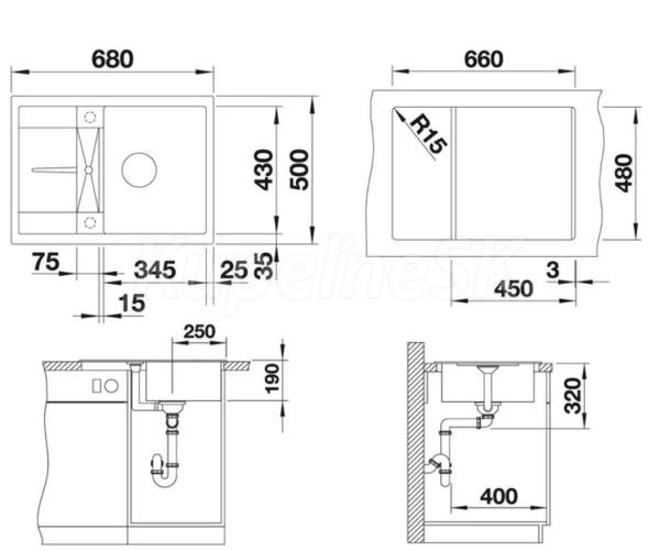 Blanco vstavaný drez METRA 45 S Compact SILGRANIT 68x50 cm sivá skala
