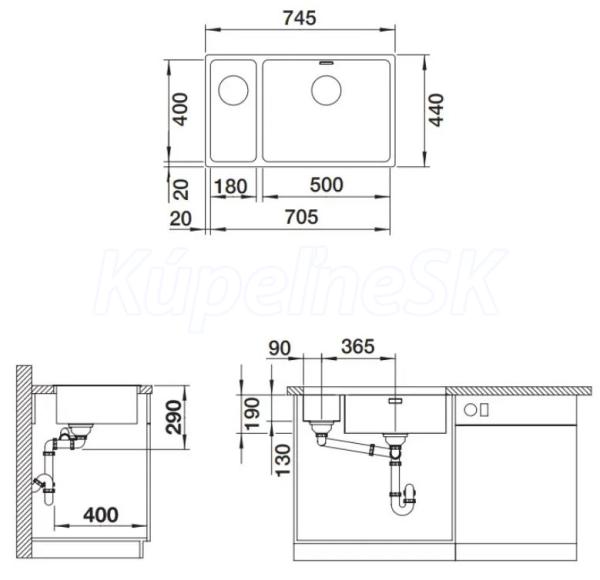 Blanco drez pod prac.dosku ANDANO 500/180-U nerez 74,5x44 cm hodvábny lesk 522989 PRAVÝ