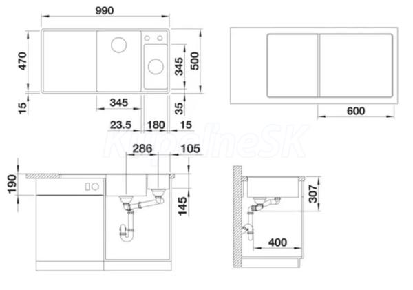 Blanco drez do roviny AXIA III 6S-F SILGRANIT 99x50 cm InFino s excentrom antracit