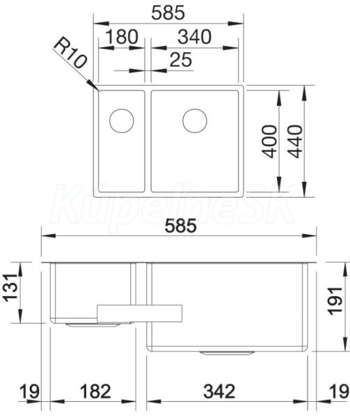 Blanco drez pod prac.dosku CLARON 340/180-U nerez 58,5x44 cm hodvábny lesk 521610 PRAVÝ