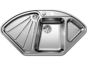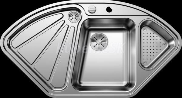 Blanco vstavaný drez do roviny DELTA II-IF nerez InFino s excentrom hodvábny lesk Nerez, hodvábny lesk Vynikajúci tvar a dizajn – najúspešnejší rohový drez ergonomický, lichobežníkový tvar vaničky dlhá uhlopriečka vaničky pre umývanie plechov na pečenie zapustená odkvapkávacia plocha a pracovná plocha so samostatnou výpusťou priestranná malá vanička s dierovanou nerezovou vložkou tento model možno zabudovať do pracovnej dosky s hĺbkou 65 cm výpusť InFino® - elegantne integrovaná a mimoriadne jednoduchá na údržbu dostupný tiež v prevedení s plochým IF-okrajom V balení tohto drezu sa nachádza: Dierovaná nerezová vložka, odtoková armatúra, dve 3 1" výpuste InFino® so sitkami a 1 1‘‘ InFino® výpusť so sitkom, excentrické ovládanie pre hlavnú vaničku, zápachový uzáver s odbočkou pre umývačku riadu