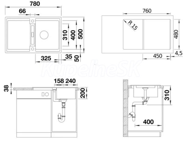 >>  KUCHYNE - Kuchynský tovar  >>  Kuchynské drezy  >>  Granitové drezy  >>  Blanco vstavaný drez ADIRA 45 S SILGRANIT 78x50 cm InFino s excentrom tartufo