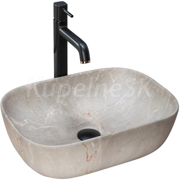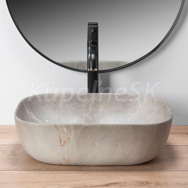 Krásna umývadlo napodobujúce kameň – Livia Beige. Vďaka technológii, akou bola vyhotovená vrchná vrstva umývadla, každý kus má jedinečný a unikátny vzor. Tento efekt napodobňuje prírodný kameň. Umývadlo je vhodné na montáž na