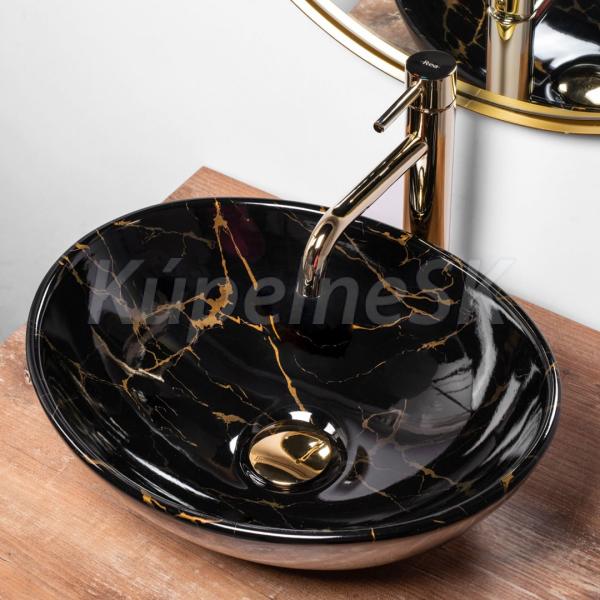 REA Sofia keramické oválne umývadlo na dosku 40x33 cm Čierny Mramor lesklý U5611