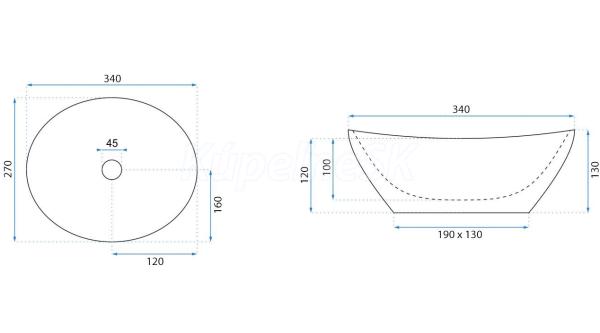 REA Sofia Mini Aiax Shiny keramické oválne umývadlo na dosku 35x26 cm U8014